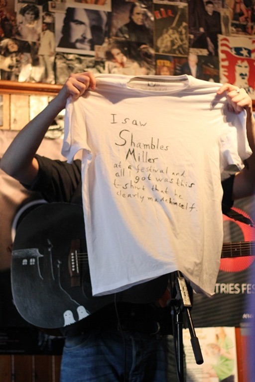 Shambles Miller was word of mouth act at Brew at the Bog, who brought in a decent crowd to the Market Bar. It would be all too easy to pass Shambles off as a bit of a joker with a guitar, but there is serious thought and timing within his songs. His ‘Things That Make Me Angry’ starts off fairly flippant with reference to those day to day matters which may irk, but leads on towards the end with those matters which do make him, and many others, truly angry. His Chris Brown song, that is a song about Chris Brown, and not a cover equally displays his sharp observations.